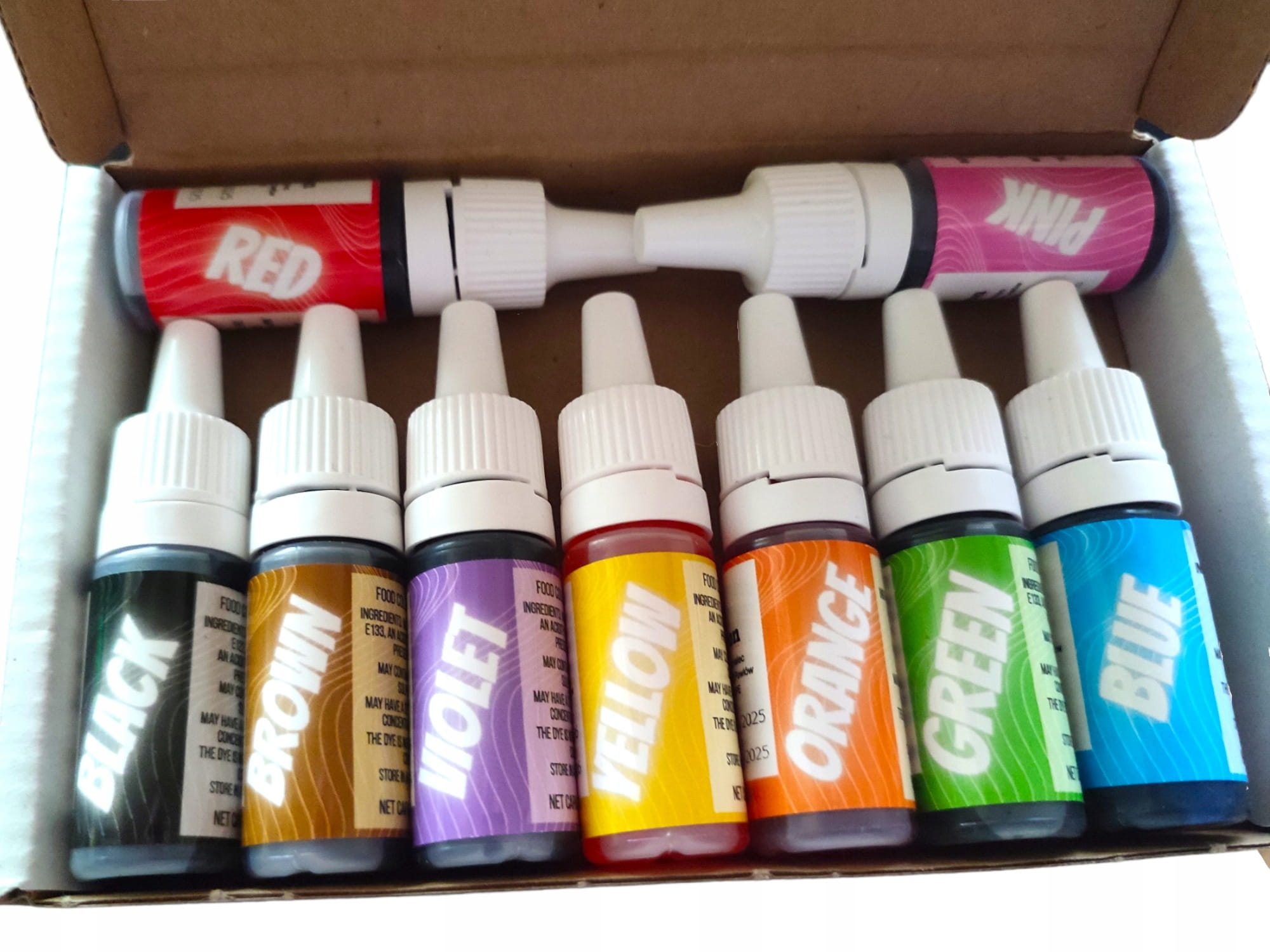 5. Pamiętaj, że w przypadku barwienia mas o dużej zawartości tłuszczu (np. czekolada, tłuste kremy) barwnik płynny może nie rozpuścić się idealnie — rozważ użycie barwnika w żelu lub w postaci przystosowanej do tłuszczów.
