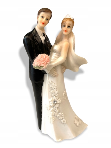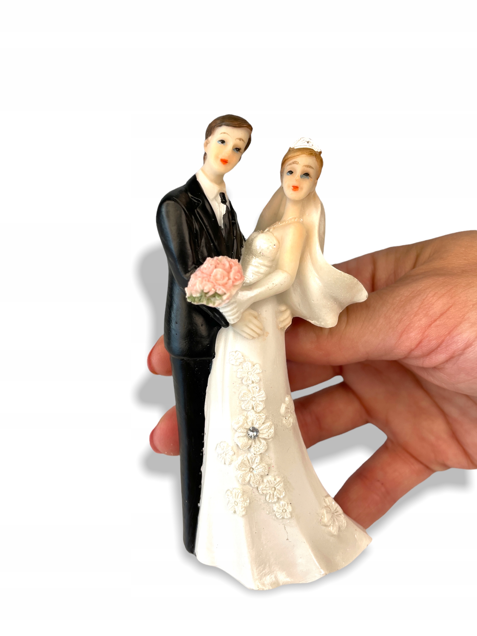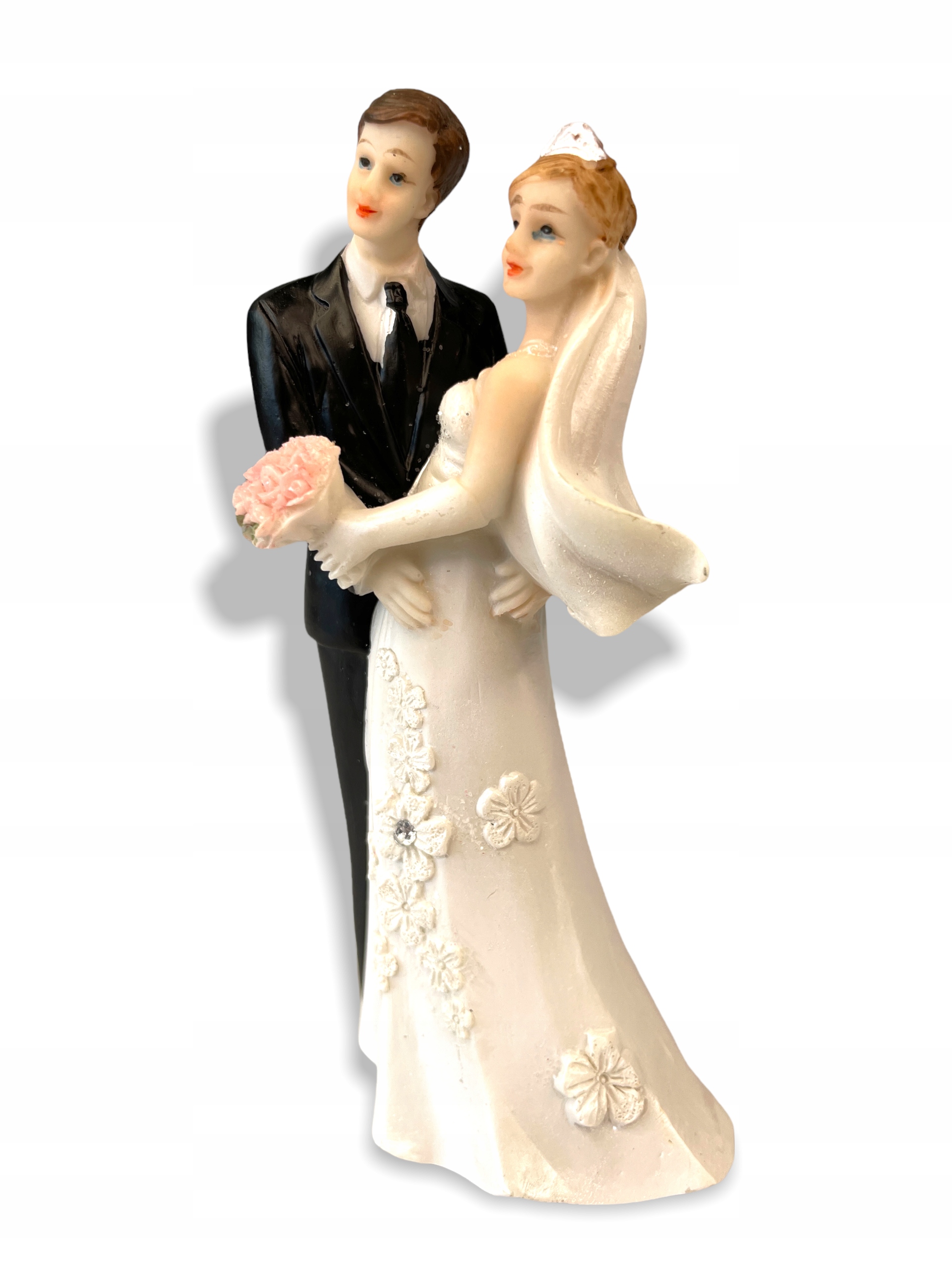 FIGURKA TORT WESELNY PARA MŁODA BUKIET TOPPER ŚLUB