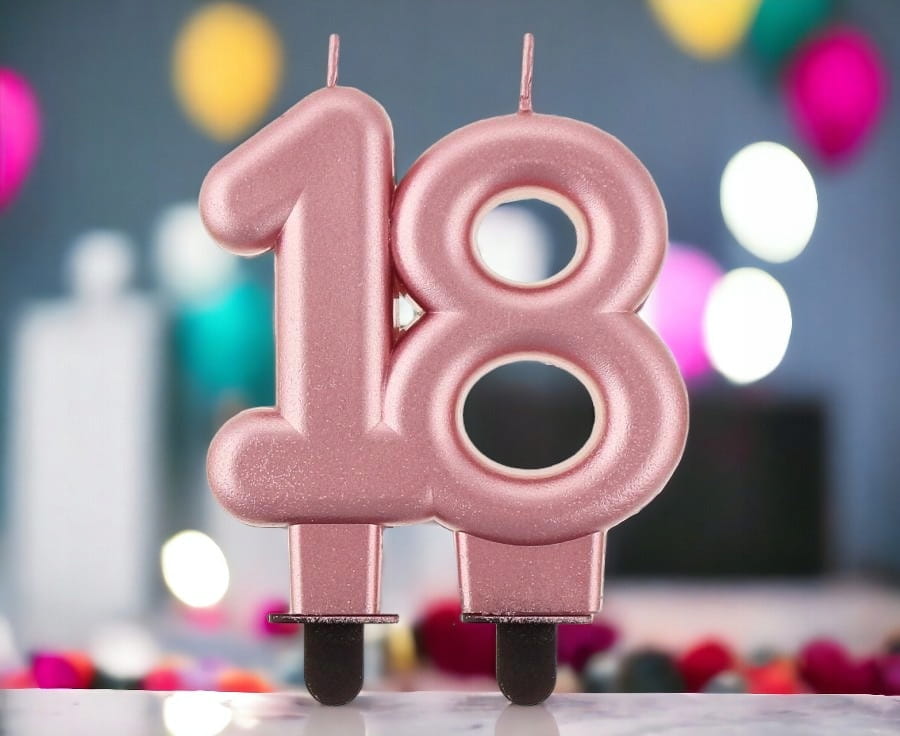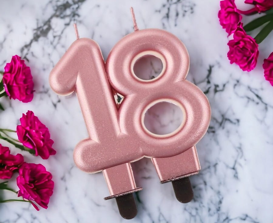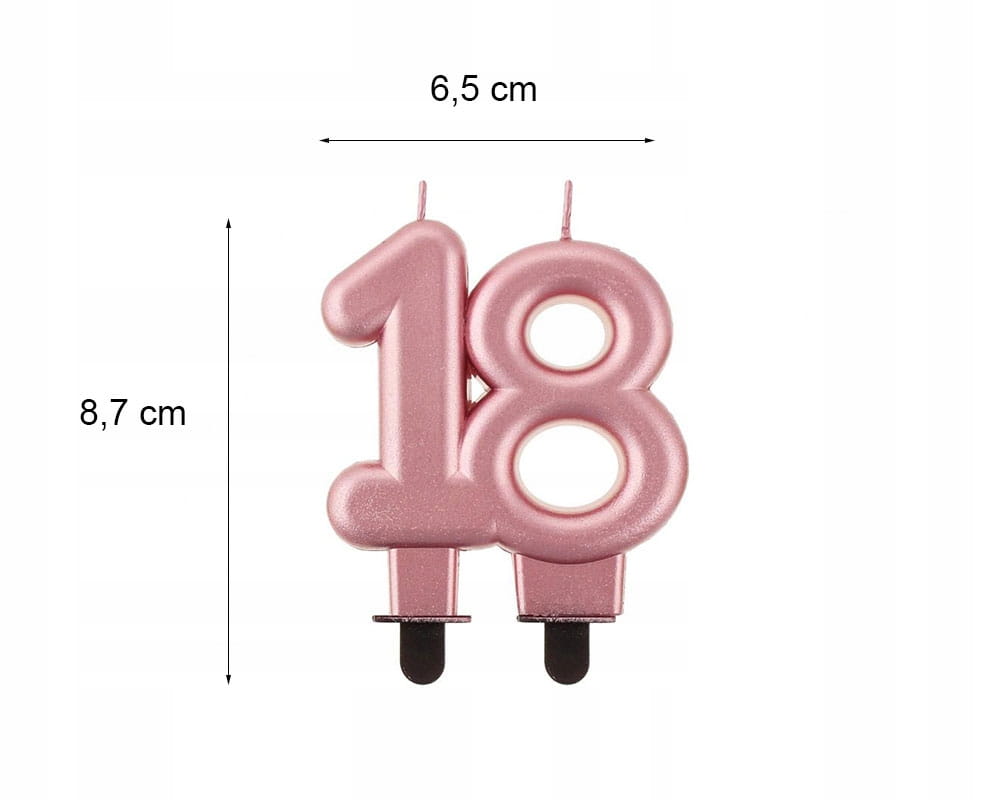 Świeczka B&C cyferka, 18, metalik różowo-złota, 8.0 cm GODAN