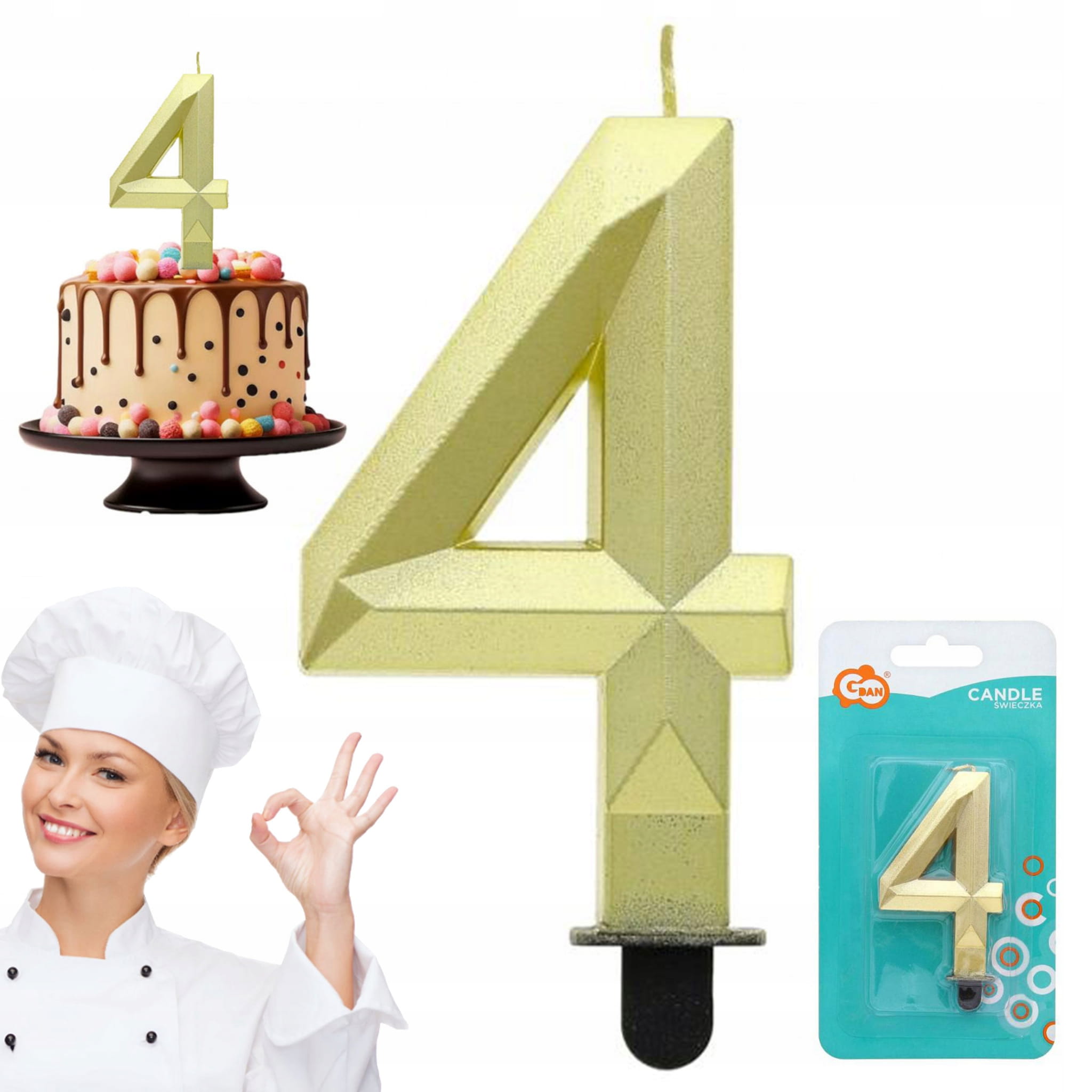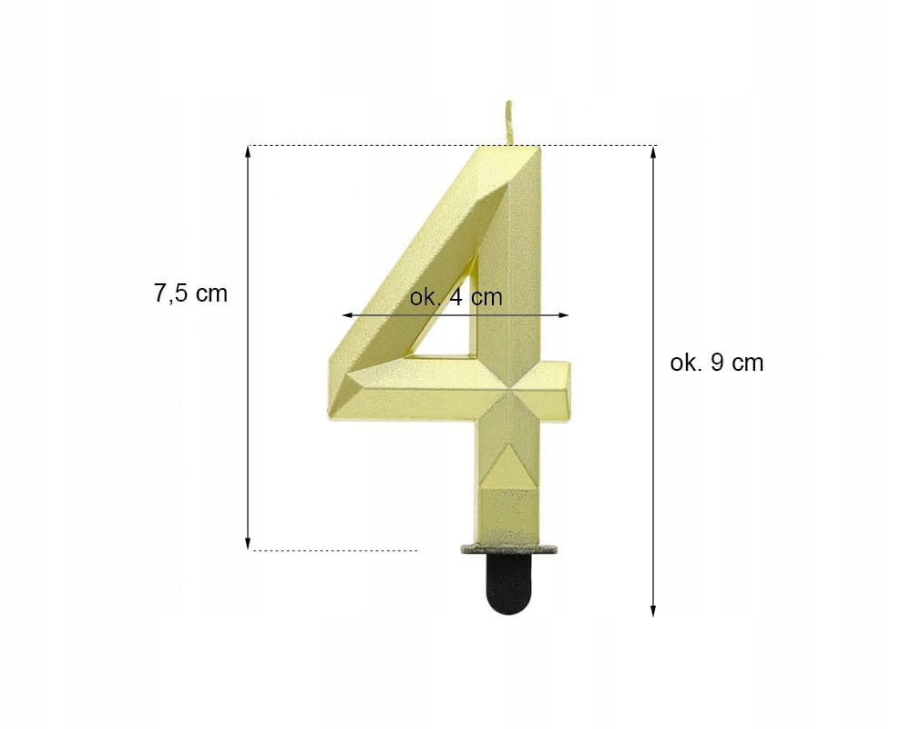 Świeczka cyferka 4 w kolorze metalik złoty to elegancki dodatek, który doskonale uzupełni każdą okoliczność. Wykonana przez renomowanego dostawcę GoDan, ta diamentowa świeczka o wysokości 7.6 cm wyróżnia się wyjątkowym blaskiem, który doda szyku i wyjątkowości Twojej imprezie. Idealna do użytku na urodzinach, rocznicach oraz innych uroczystościach, sprawi, że chwile celebracji staną się jeszcze piękniejsze. Dzięki wysokiej jakości wykonania, świeczka nie tylko prezentuje się wspaniale, ale także pali się w bezpieczny sposób. Wybierz tę świeczkę, aby nadać swoim wydarzeniom niezapomniany charakter.