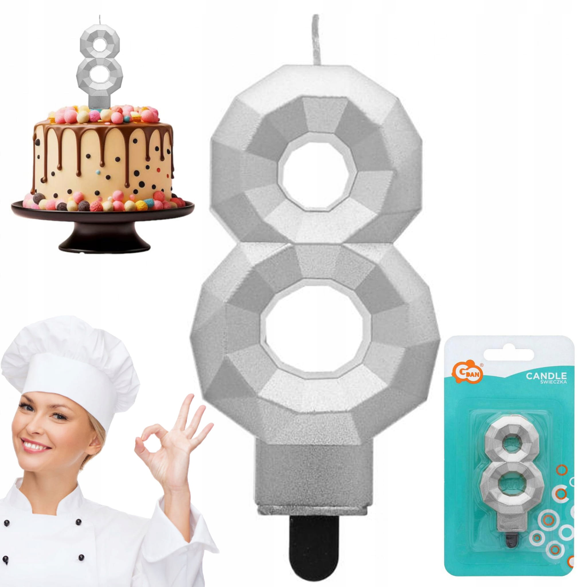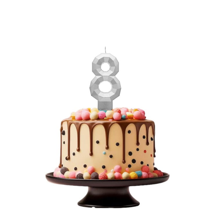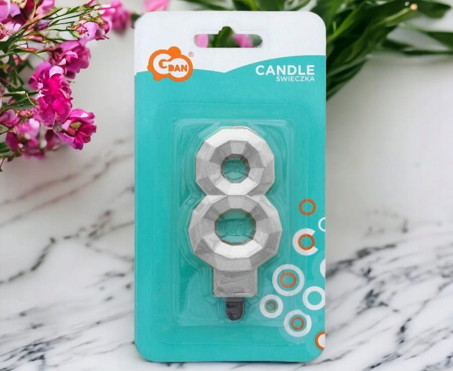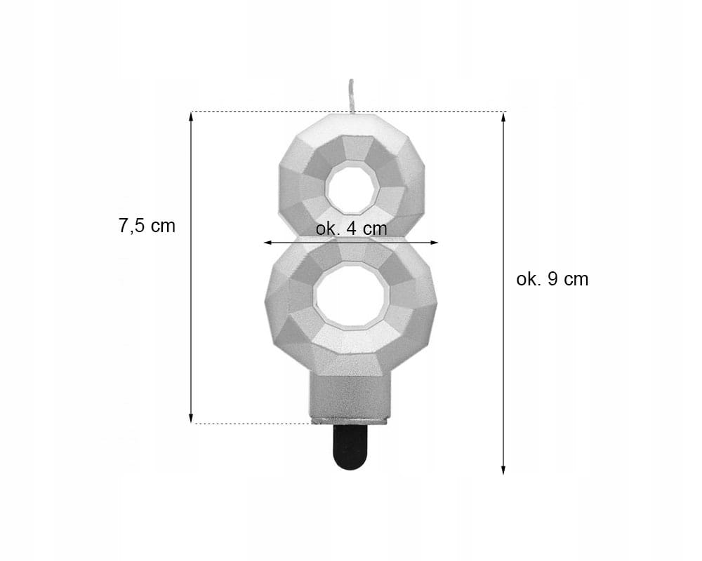Szukasz wyjątkowego akcentu na urodzinowy tort? Cyferka 9 w metalicznym srebrnym kolorze to idealny wybór! Jej diamentowy efekt z pewnością przyciągnie wzrok i sprawi, że każda impreza stanie się jeszcze bardziej niezapomniana. Wysoka na 7.6 cm, doskonale się prezentuje i stanowi perfekcyjne dopełnienie każdego słodkiego dzieła sztuki. Spraw, aby ten wyjątkowy dzień był jeszcze bardziej magiczny dzięki naszej świeczce!