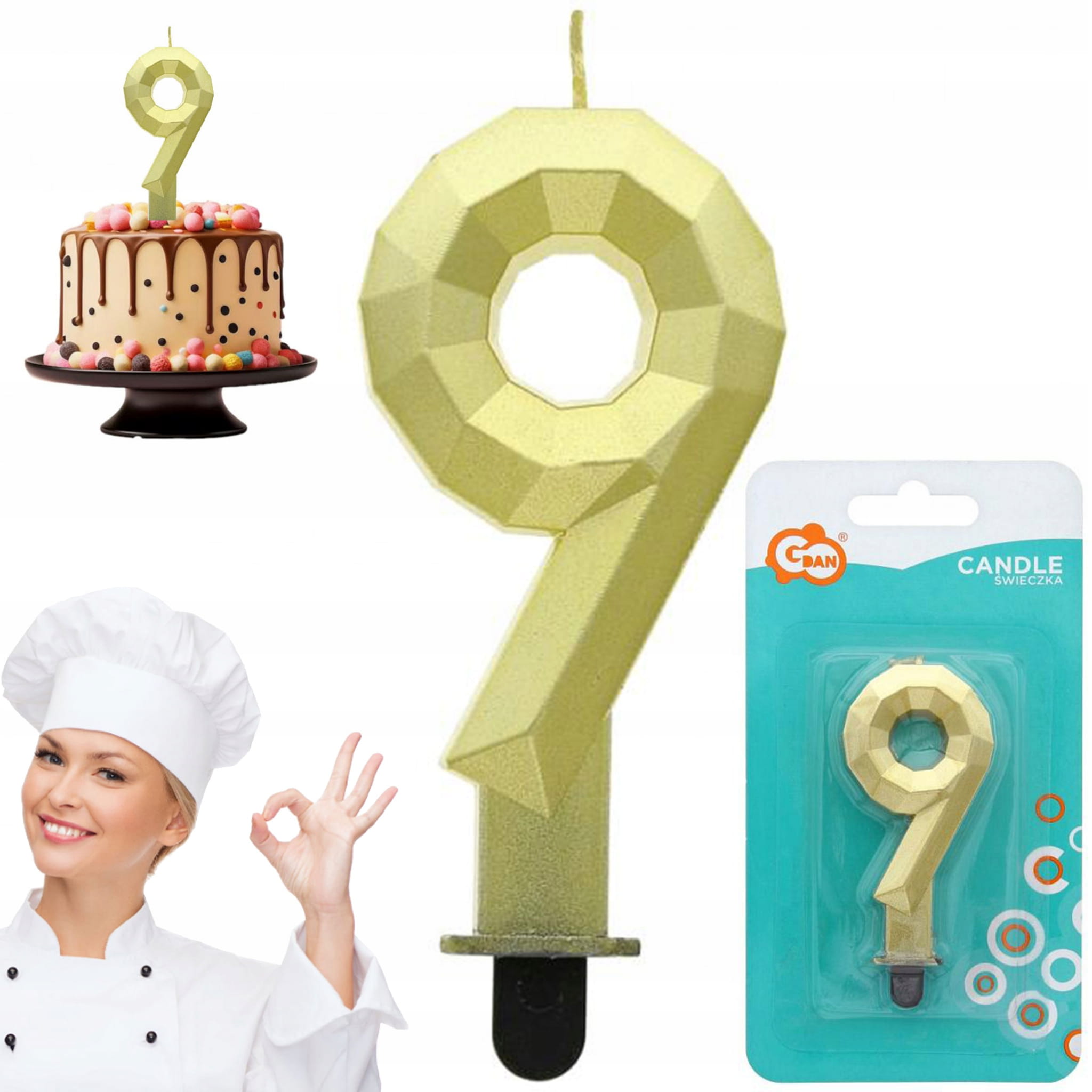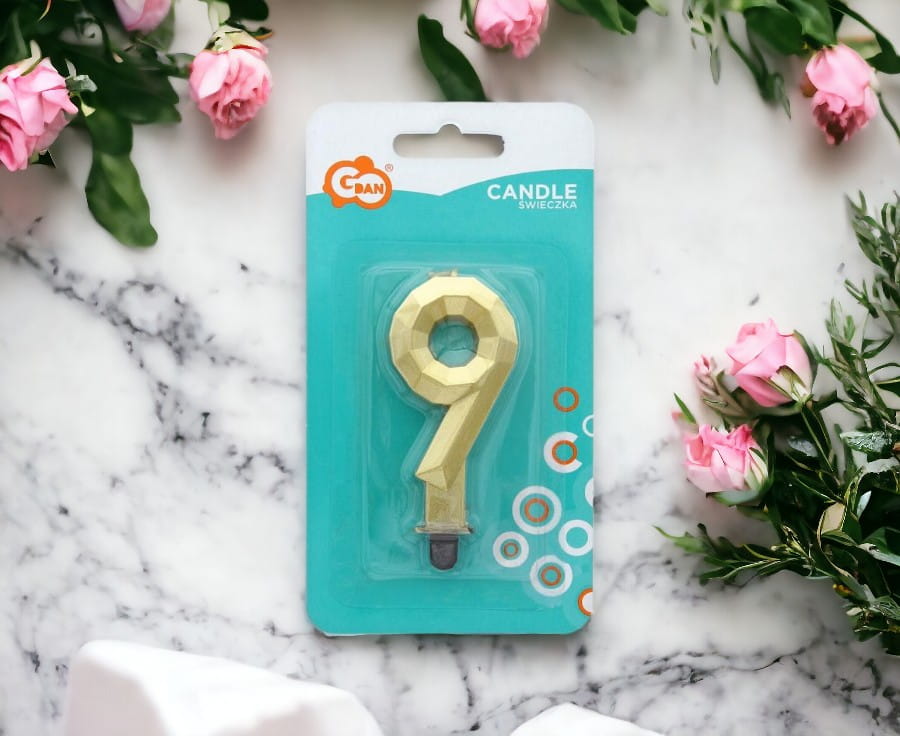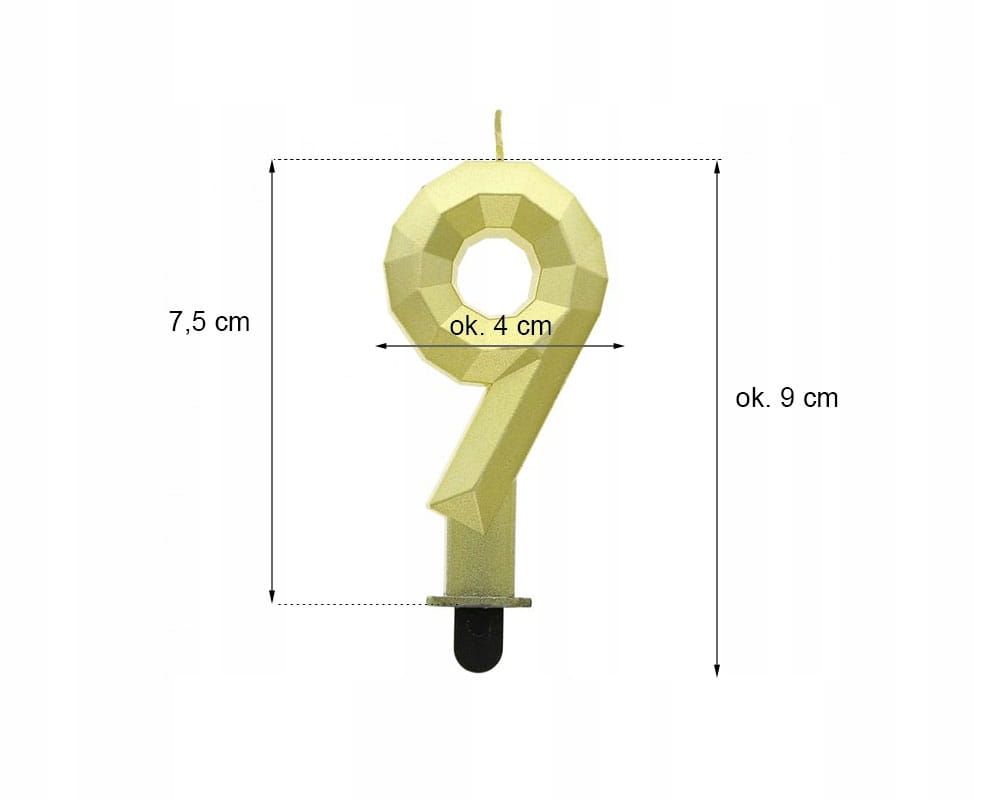 Świeczka cyferka 9 w odcieniu diamentowego, metalicznego złota to doskonały dodatek do wszelkich uroczystości, takich jak urodziny, rocznice czy inne ważne okazje. Wysokość świeczki wynosi 7,6 cm, co sprawia, że jest ona idealnie widoczna na torcie czy innej słodkiej uczcie. Wyjątkowy blask i elegancki wygląd sprawią, że każda impreza zyska na wyjątkowości. Produkt pochodzi od renomowanego dostawcy GoDan, co gwarantuje wysoką jakość wykonania. Udekoruj swoje celebrowane chwile i uczcij ważne momenty w niezapomniany sposób.