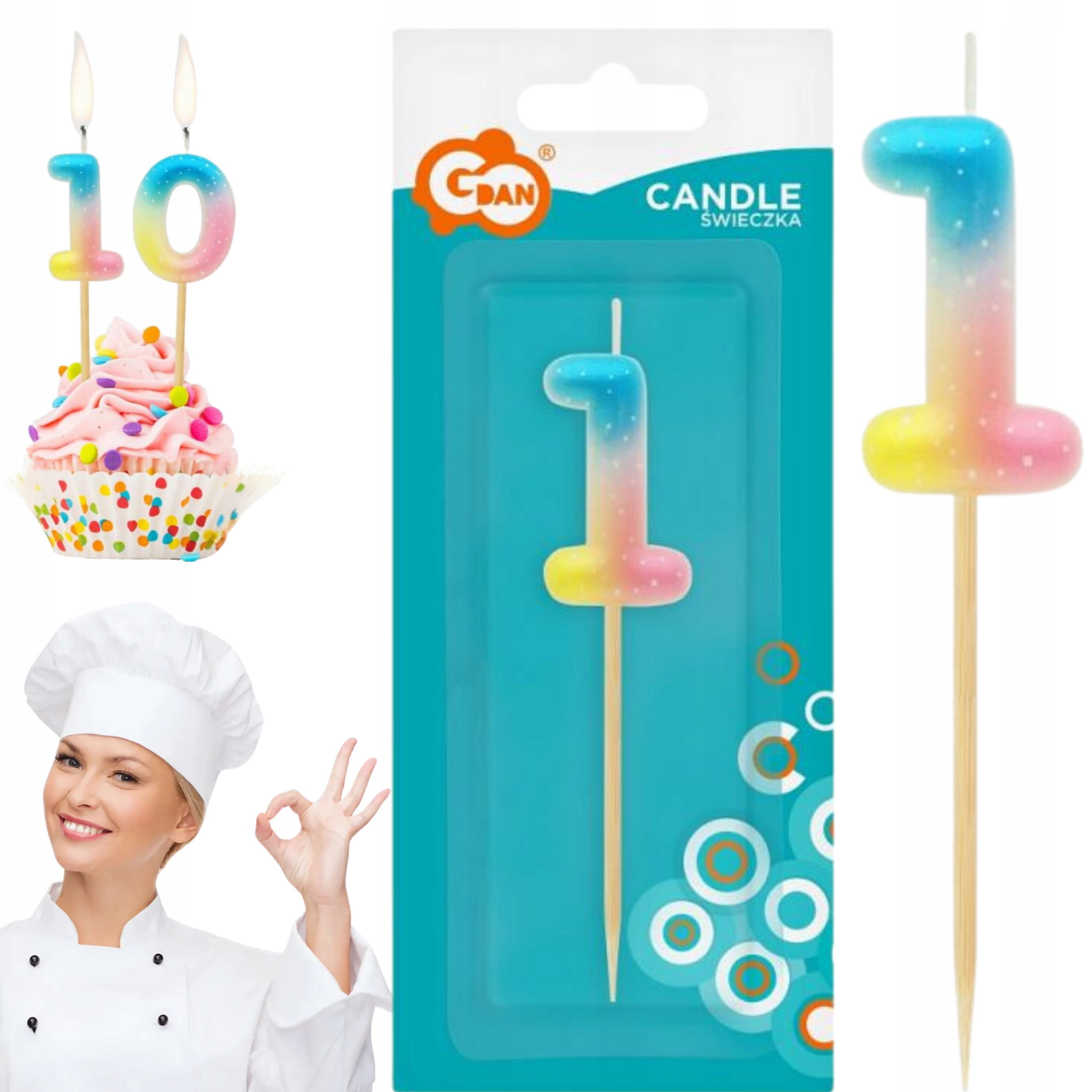 Świeczka na tort piker cyferka 1 – pastelowa dekoracja w stylu ombre