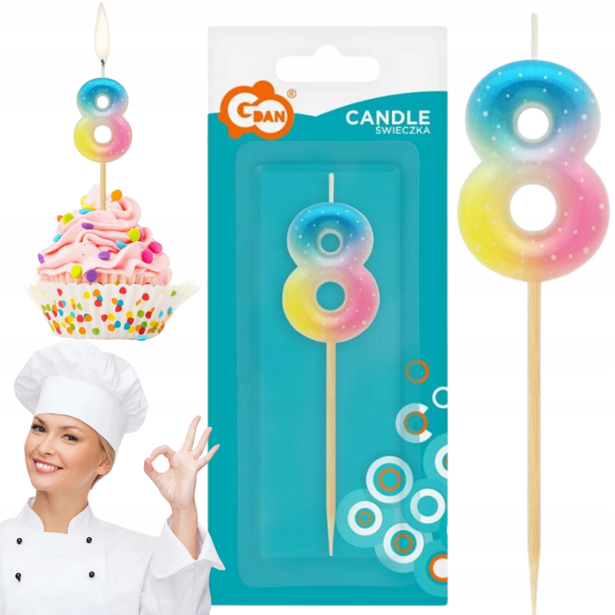Świeczka na tort piker cyferka 8 – pastelowa dekoracja w stylu ombre