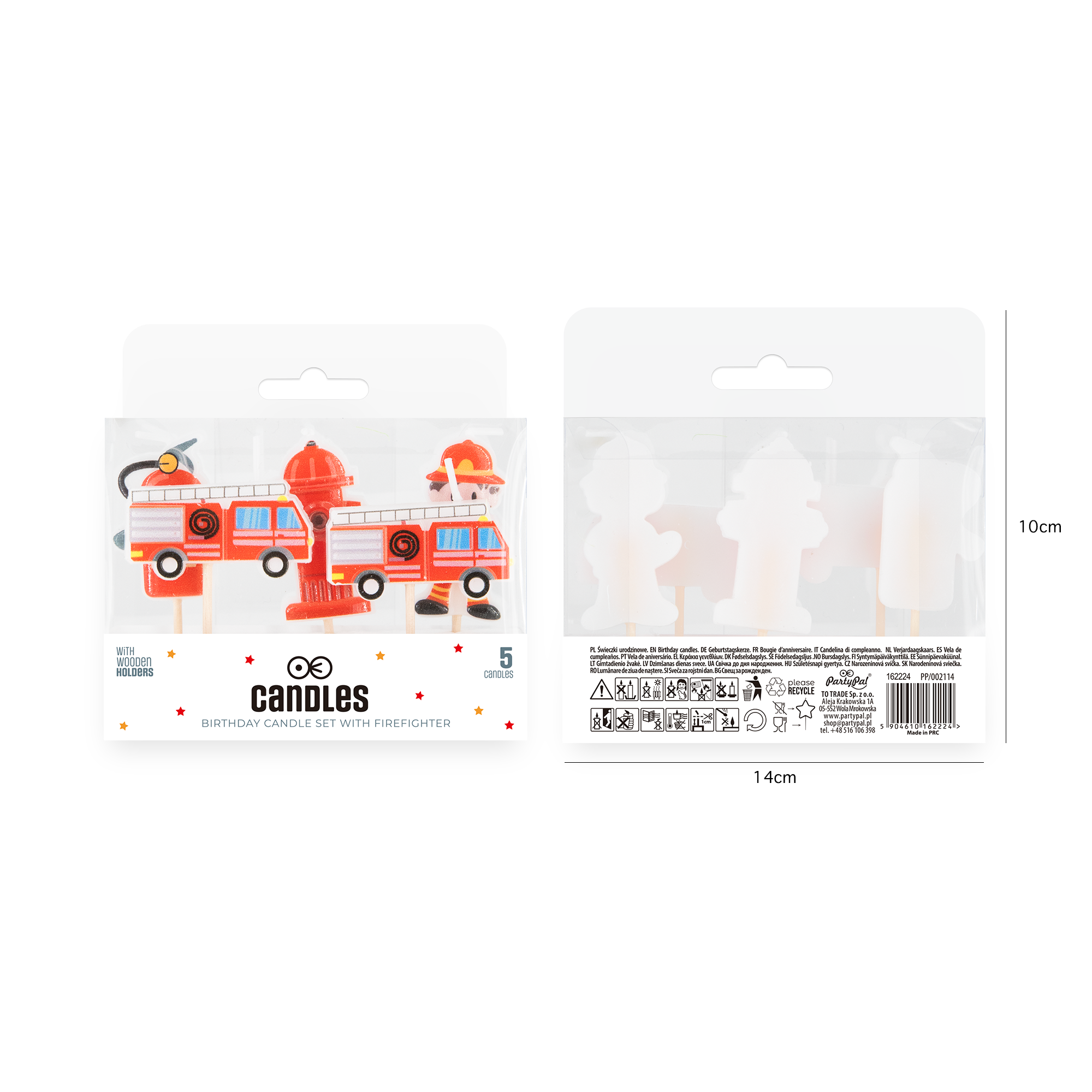 Rozpal wyobraźnię i dodaj ognia każdej dziecięcej imprezie dzięki świeczkom urodzinowym z motywem Straży Pożarnej. Ten zestaw 5 kolorowych pikerów to idealna dekoracja na tort dla małych fanów strażackich przygód. Wzory przedstawiające wóz strażacki, hydrant, gaśnicę oraz dzielnego strażaka wprowadzą wyjątkowy klimat na każde przyjęcie urodzinowe.